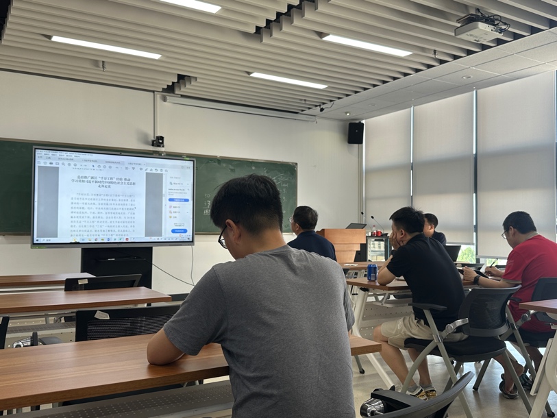 首先,谢家新老师带领大家集体学习了习近平总书记在中共中央政治局第五次集体学习时的重要讲话精神,强调了建设教育强国的意义,并倡导身在教育和科研一线的党员同志们,做好本职工作,立德树人,努力奋进,为实现教育强国目标贡献自己的力量。随后,谢家新老师以浙江千万工程为例,从基本情况、主要做法、经验启示三个方面带领支部党员深刻感悟了党的创新理论及其真理力量和实践伟力,师生党员围绕该案例进行了学习研讨。