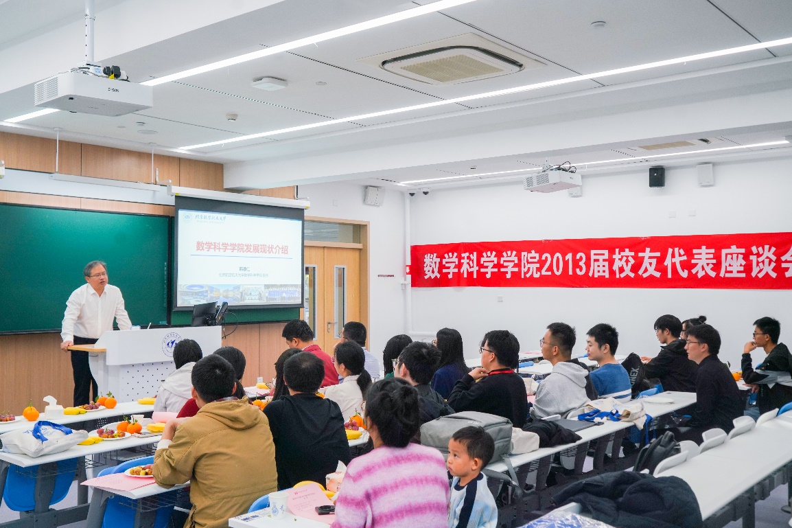 10月28日,数学科学学院2013届校友代表座谈会于学院路校区主楼102举行。13位校友返回校园,共叙深厚情谊,畅谈未来发展。学院院长韩德仁,2013届学生班主任代表张思容、冯伟参加座谈会。本次座谈会由学院专职辅导员程乾主持。